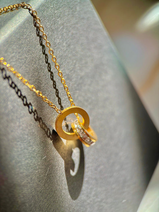 Chic Linked Circles Pendant necklace, Stainless Steel